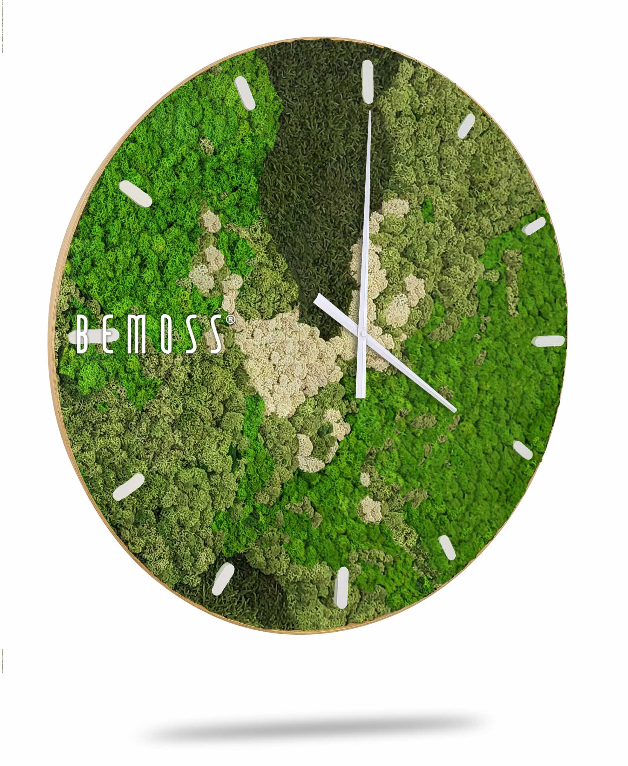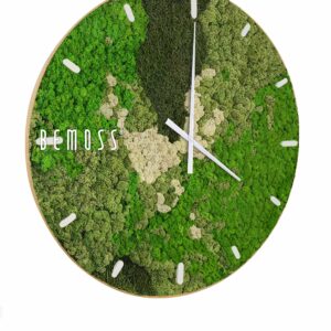 Mechové hodiny BEMOSS® ORTHO GREEN s ciferníkem jsou mistrovským dílem, které do vašeho prostoru přinese svěžest přírody a eleganci moderního designu. Povrch hodin tvoří 100% přírodní stabilizovaný mech, který nepotřebuje žádnou údržbu a dlouho si zachovává svou barvu a strukturu. Stabilizovaný mech působí jako živý, díky čemuž hodiny vypadají stále svěže a přírodně.