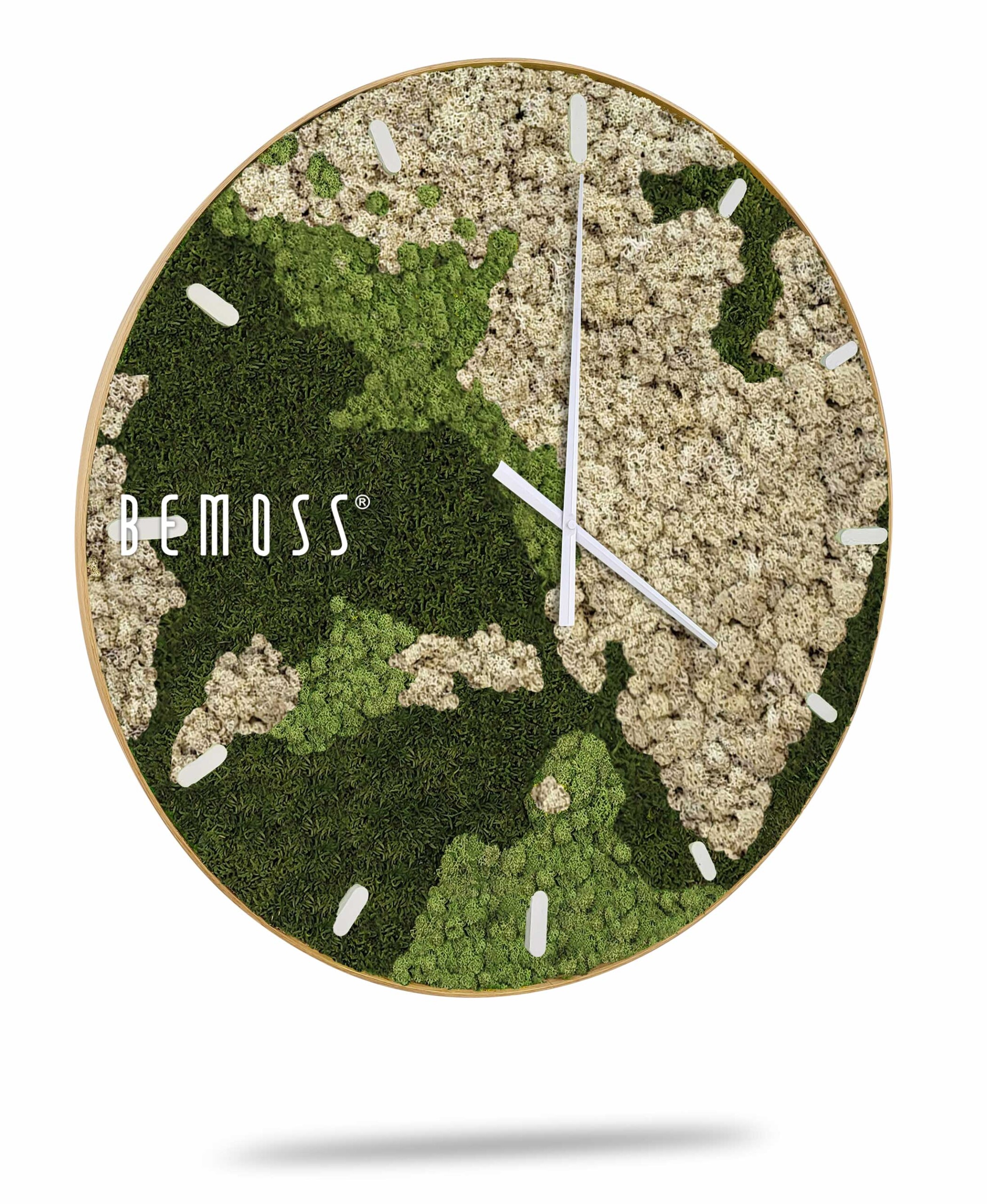 Mechové hodiny BEMOSS® ORTHO NATURAL s ciferníkem jsou kombinací přírodního designu a praktičnosti, která oživí jakýkoli interiér. Povrch hodin pokrývá 100% přírodní stabilizovaný mech, který si zachovává svou barvu a strukturu bez potřeby jakéhokoli zavlažování či údržby. Tento ekologický a udržitelný materiál nejenže šetří přírodu, ale také dodává hodinám výjimečný vzhled.