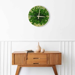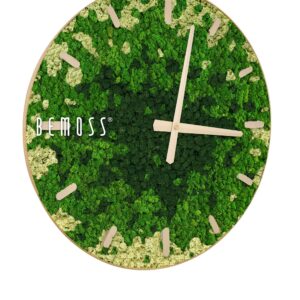 Hodiny jsou bezúdržbové, což znamená, že si zachovávají svůj svěží vzhled bez potřeby zavlažování nebo speciální péče. Stabilizovaný mech je navíc hypoalergenní, vhodný do domácností s alergiky, a díky svým akustickým vlastnostem přispívá ke snížení hluku v prostoru. Tento ekologický doplněk je ideální pro milovníky udržitelného životního stylu.