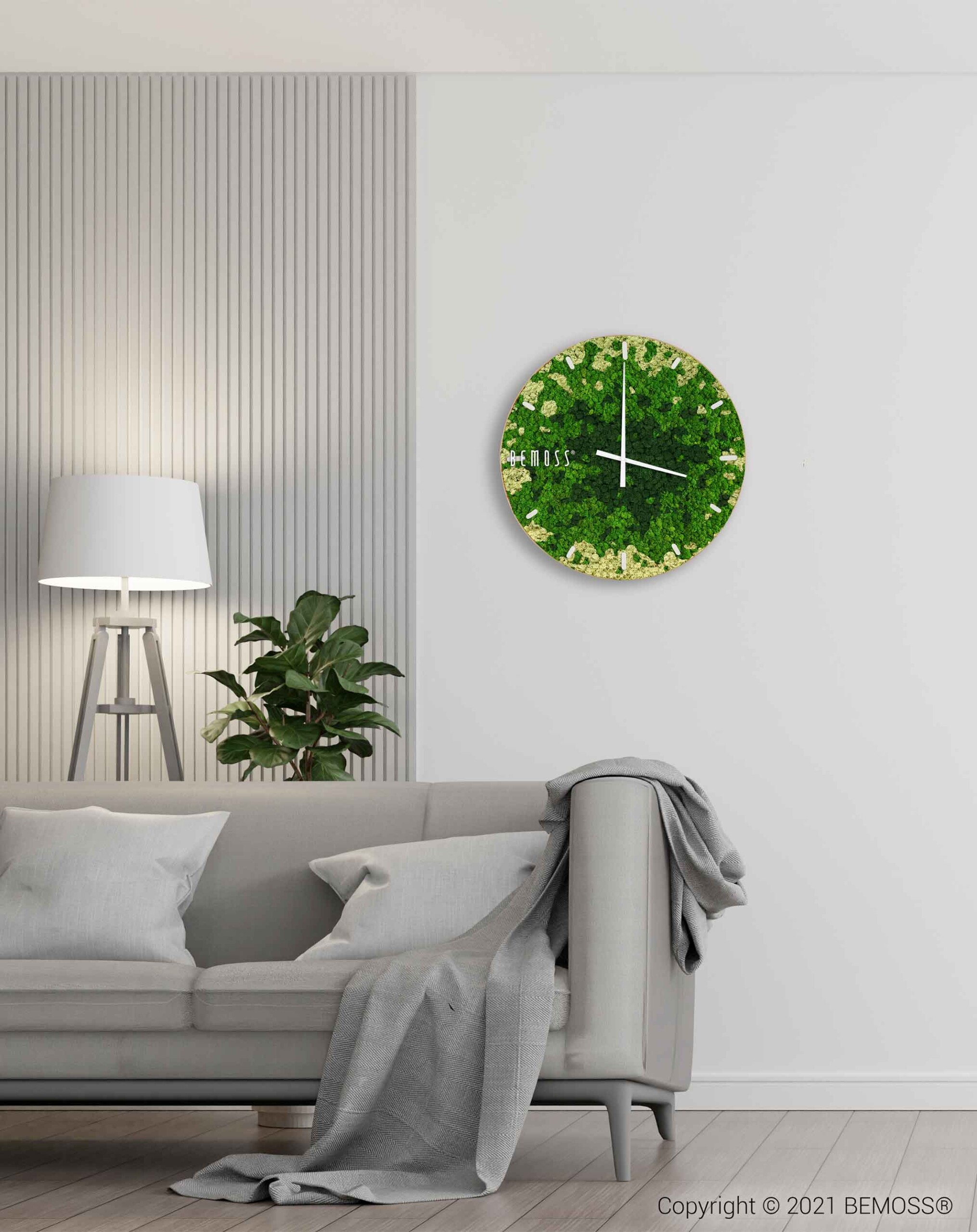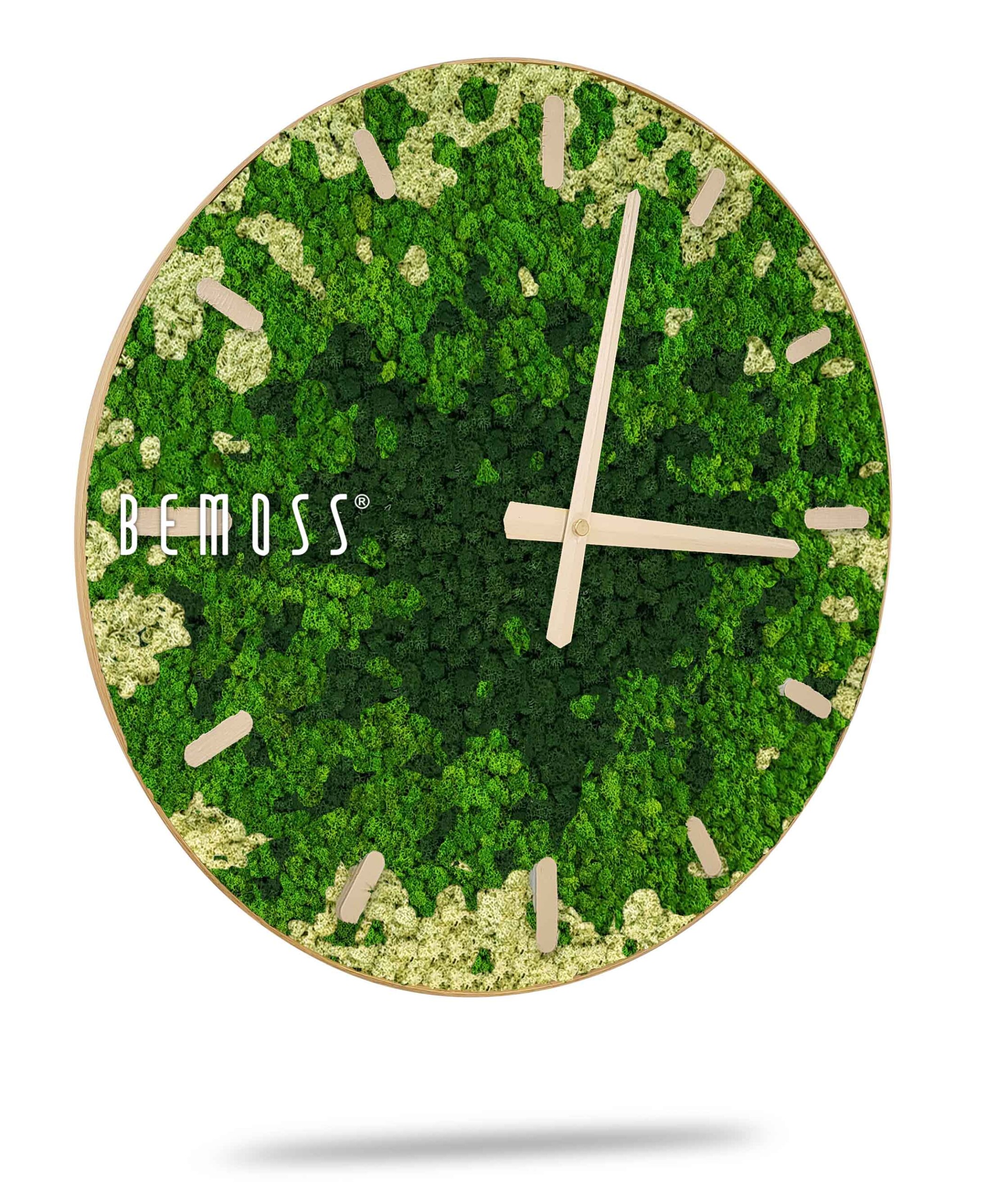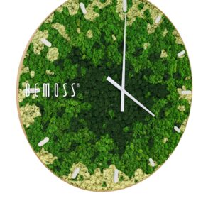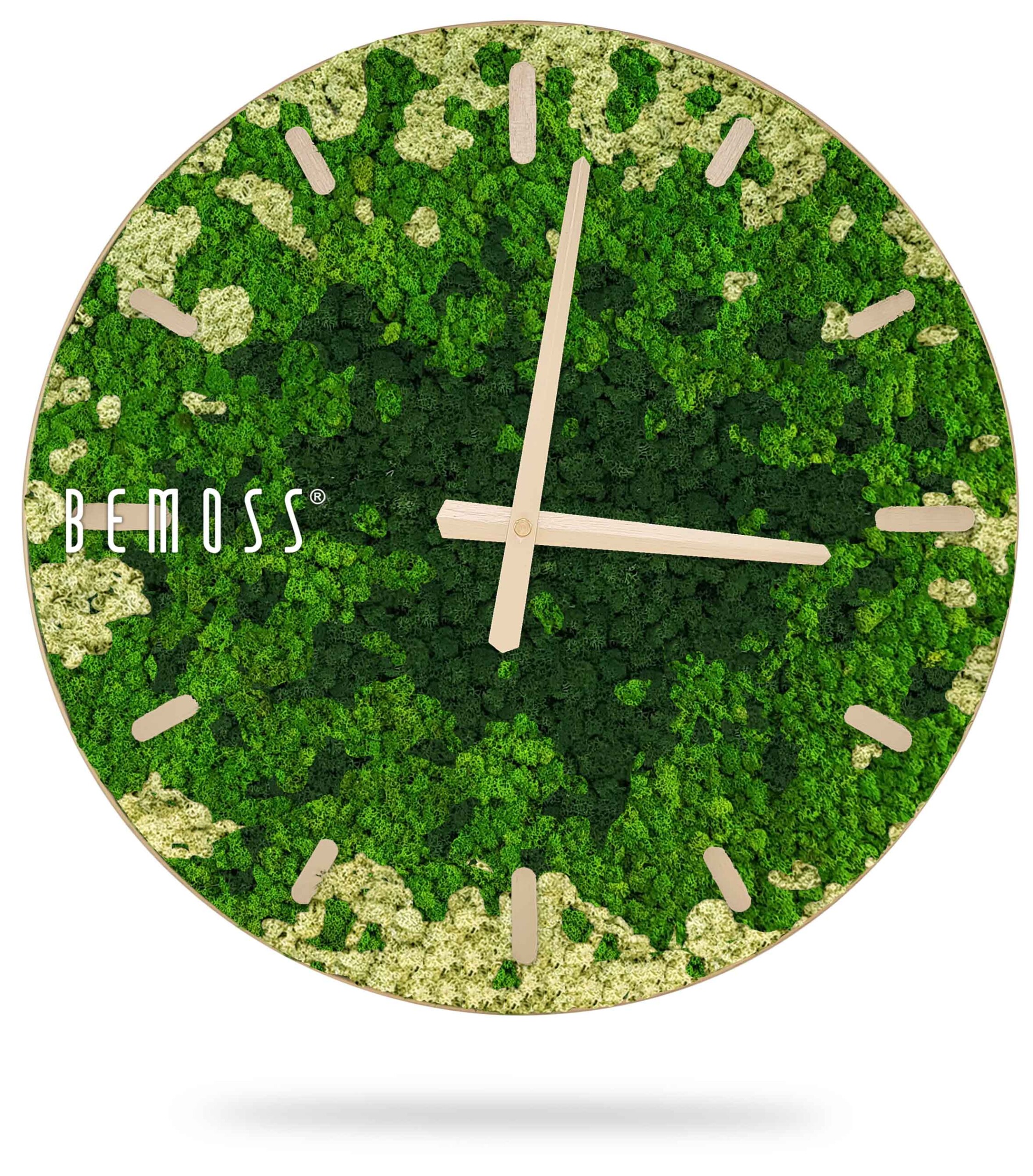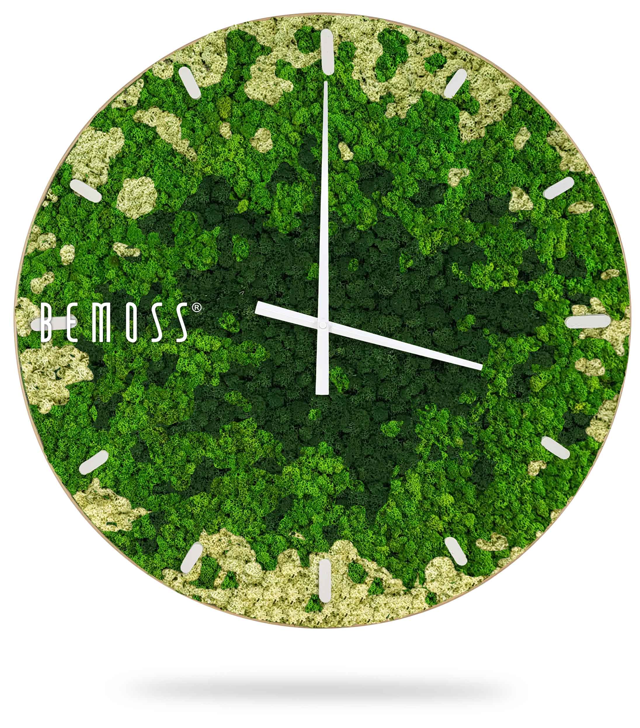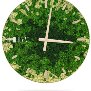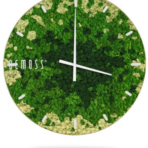 Mechové hodiny BEMOSS® SPLASH Green s ciferníkem spojují jedinečnou krásu přírody se stylovým designem, který oživí každou místnost. Povrch hodin tvoří 100% přírodní stabilizovaný mech, ručně zpracovaný v Česku. Zelené a béžové tóny mechu připomínají uklidňující atmosféru lesních porostů, přičemž hodiny jsou dostupné s ciferníkem v barevných variantách podle vašich preferencí.