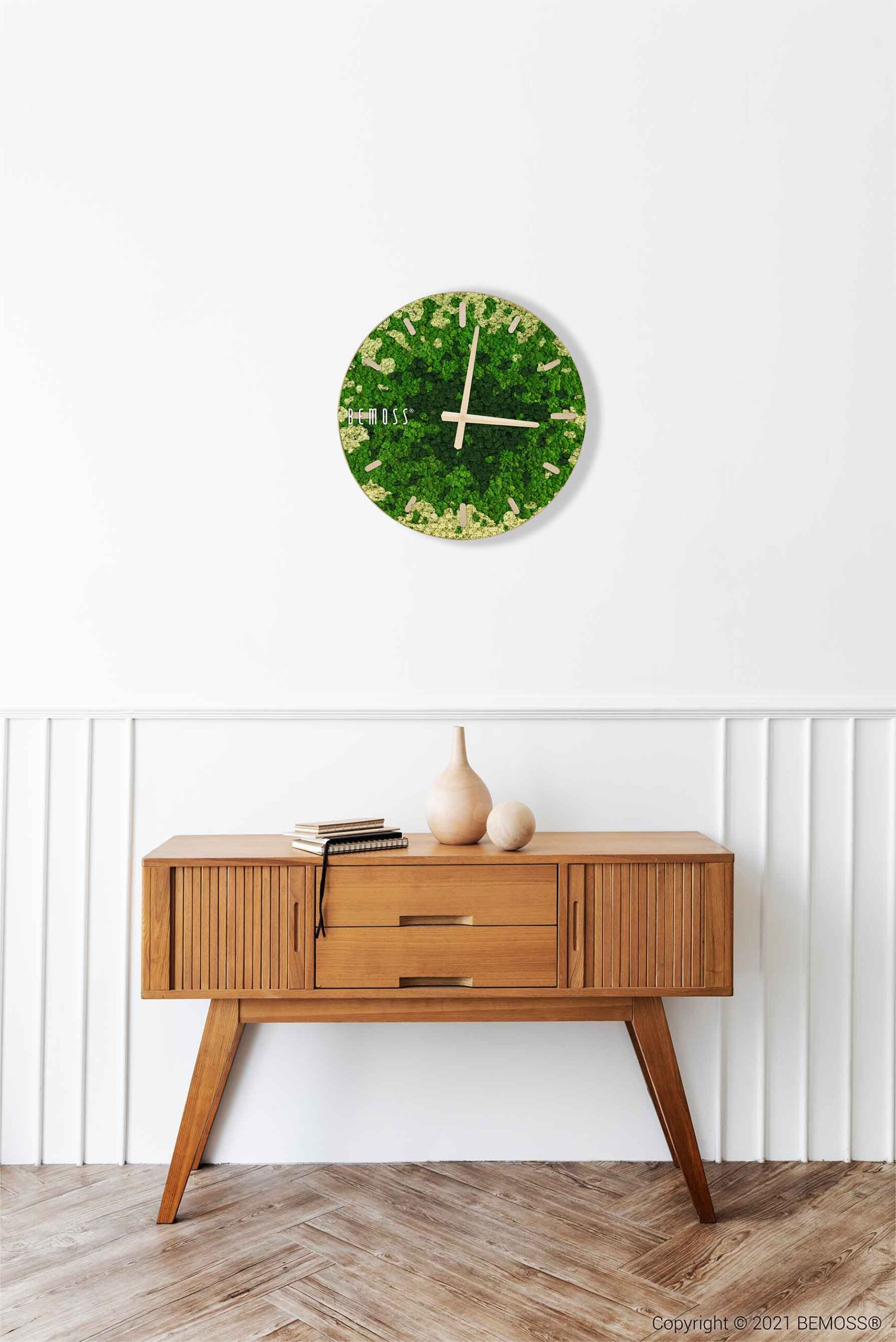 Mechové hodiny BEMOSS® SPLASH Green s ciferníkem přinesou do vašeho domova jedinečný dotek přírody. Vyrobené ručně v Česku ze 100% přírodního stabilizovaného mechu, který je bezúdržbový, ekologický, hypoalergenní a zlepšuje akustiku. Kombinace zelených a béžových odstínů evokuje harmonii lesa, zatímco ručičky a ciferník v různých barevných provedeních umožňují dokonalé přizpůsobení vašemu interiéru.