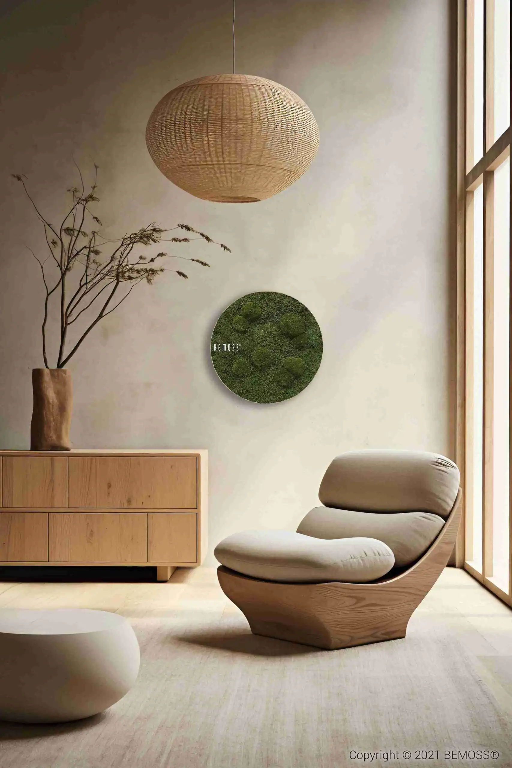 Tento obraz je vyroben z kvalitního stabilizovaného mechu, díky čemuž je bezúdržbový a vhodný i pro alergiky, protože je hypoalergenní. Vyniká také výjimečnými akustickými vlastnostmi, které pomáhají zlepšit akustiku místnosti. Díky tomu je ideálním doplňkem do obývacího pokoje, kanceláře či ložnice.